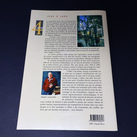 1995 Histoire Populaire du Québec #4 1896 à 1960 de Jacques Lacoursière Français