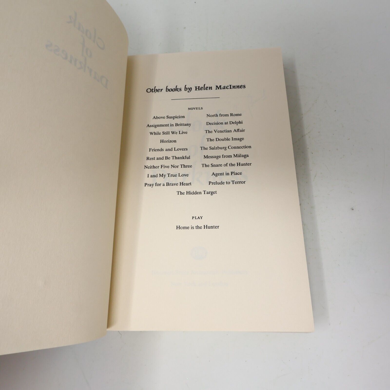 1982 Cloak of Darkness Helen Macinnes Thriller Mystery Espionage Harcourt Book