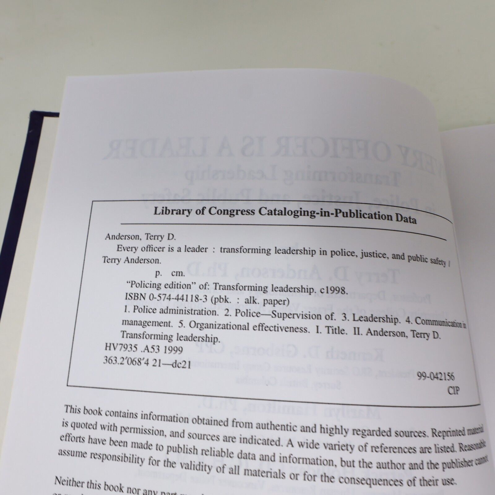 1999 Every Officer Is a Leader Terry Anderson Justice Police Public Safety Book