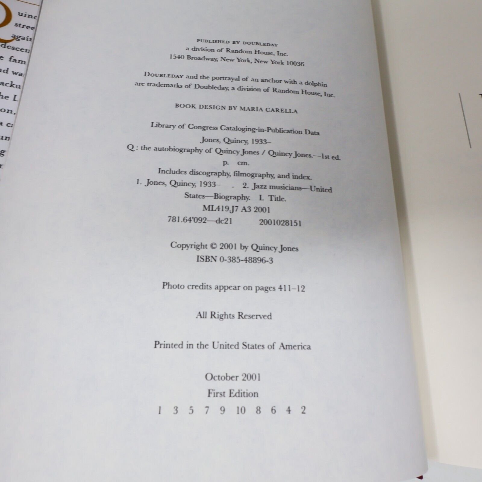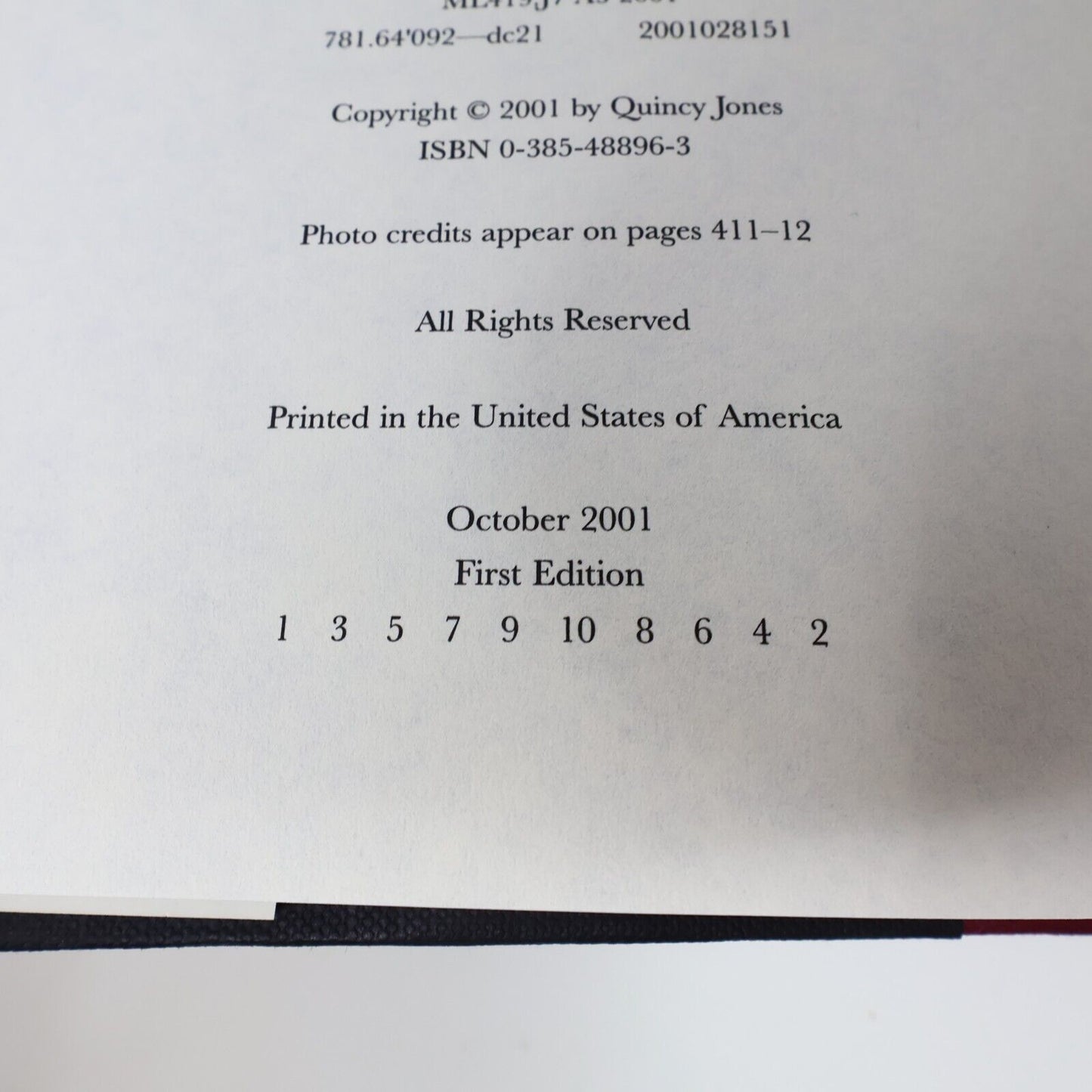 2001 Q the Autobiography of Quincy Jones Music 1st Edition Random House Book HC