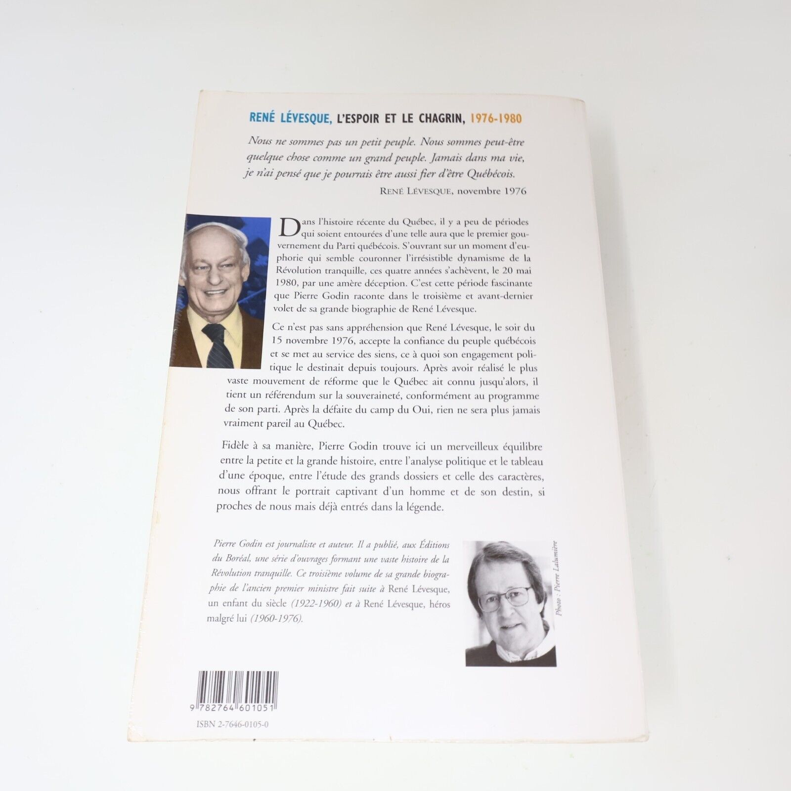 2001 René Lévesque L'Espoir et le Chagrin #3 de Pierre Godin Boréal Biographie