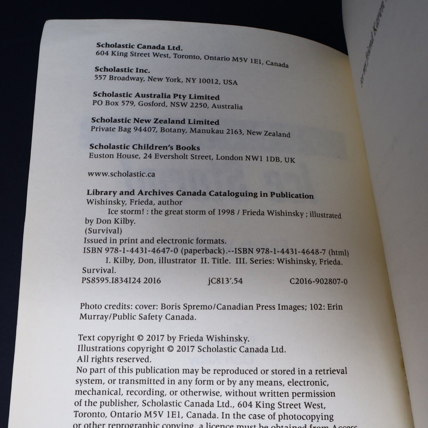 2016 Survival Ice Storm! by Frieda Wishinsky The Great Storm of 1998 Scholastic