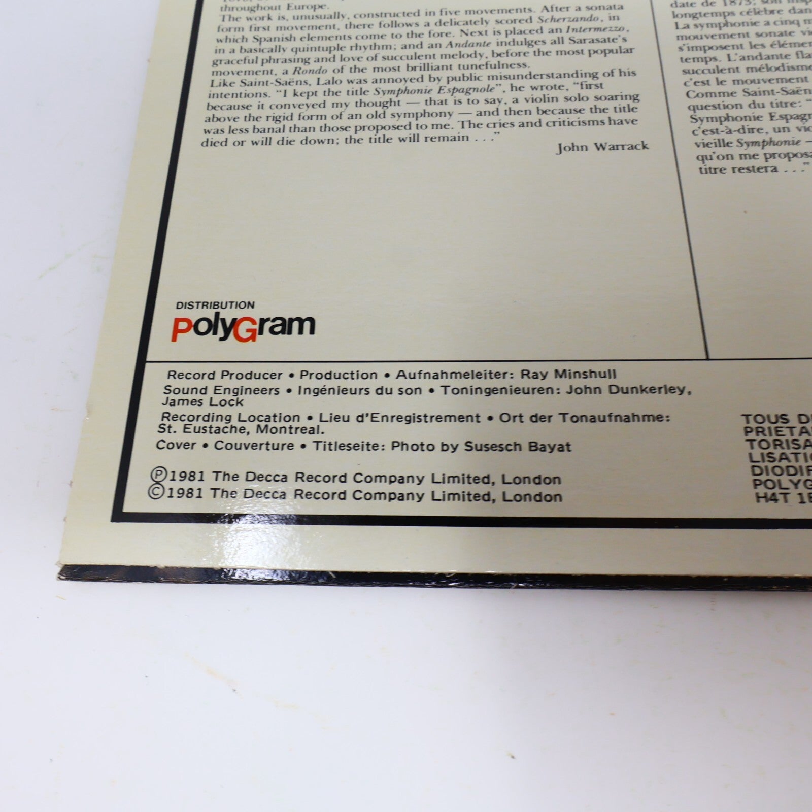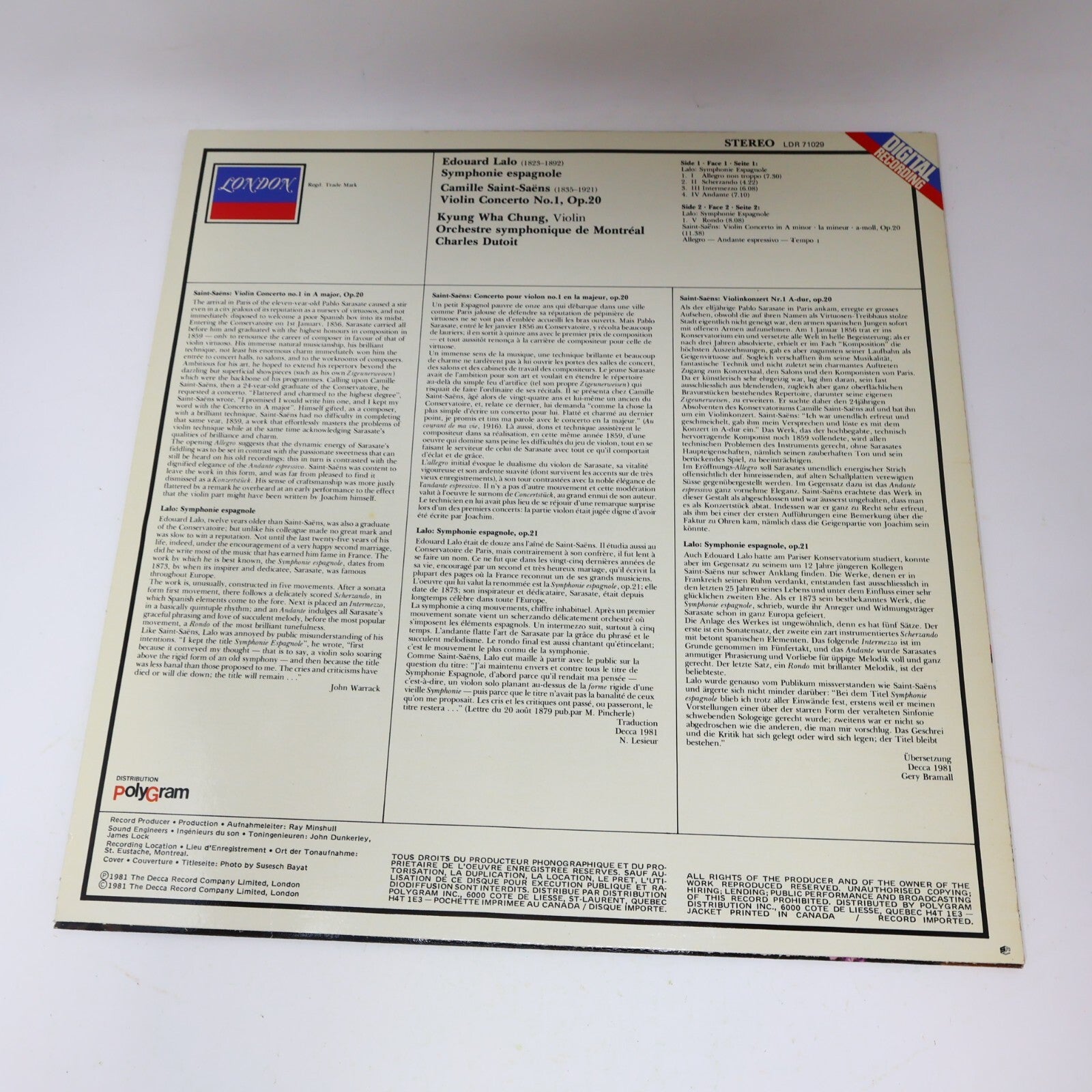 Kyung Wha Chung Symphonie Espagnole/Violin Concerto 1 Dutoit Record LDR 71029