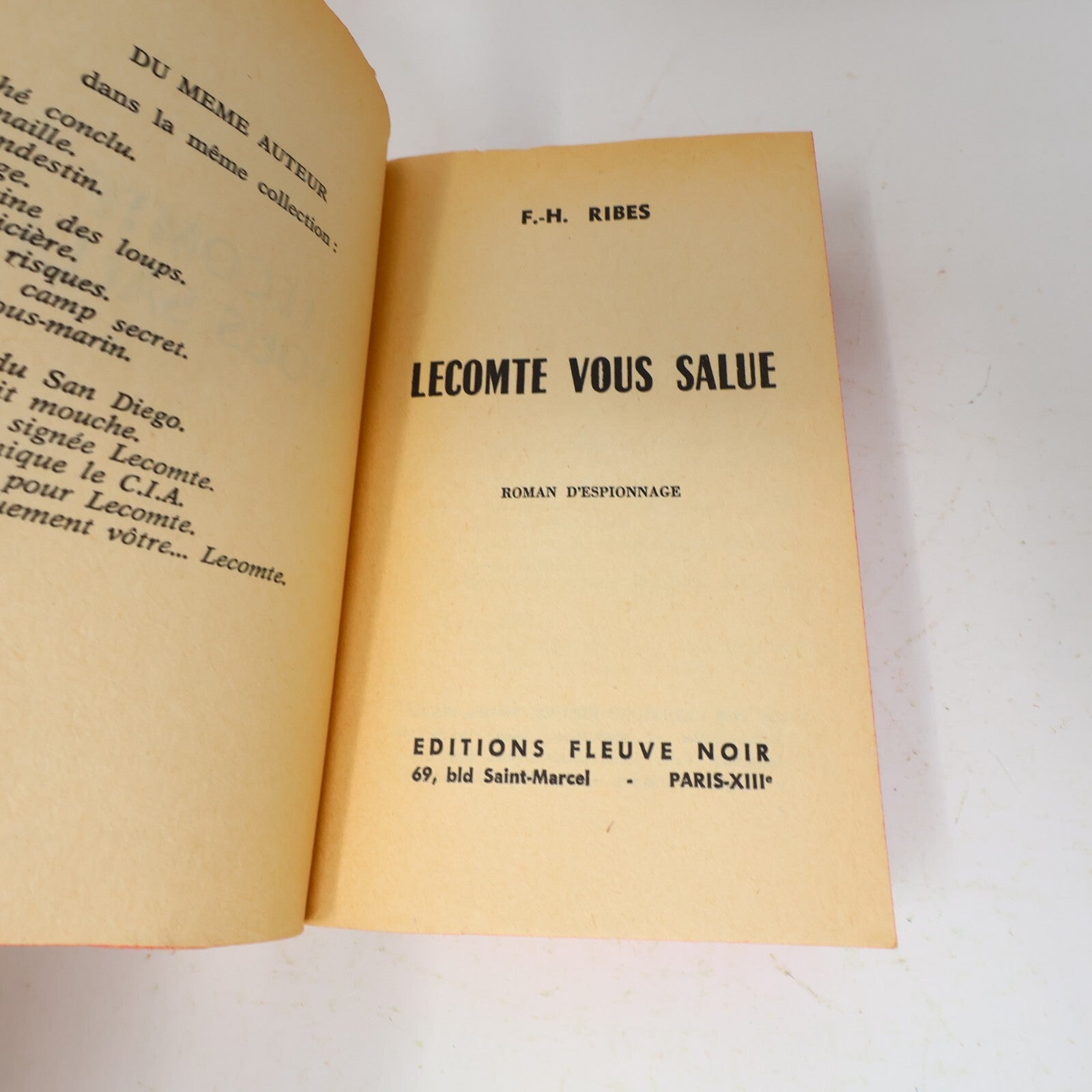 Lot 2 Livres Espionnage Fleuve Noir Ribes/Joste/Arno Le Comte Vous Salue 1960s