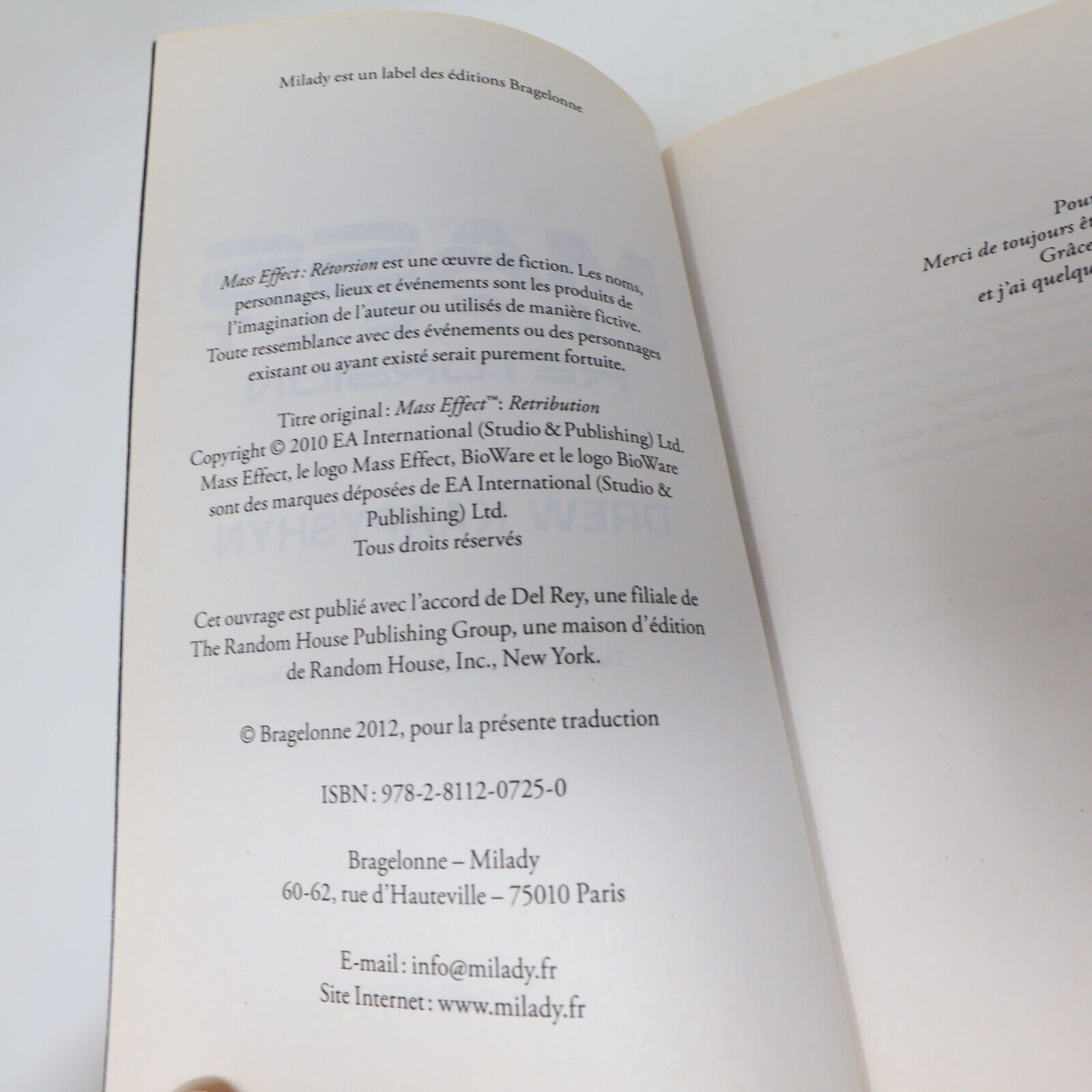 Lot 3 Livres Mass Effect #1-3 Drew Karpyshyn Milady Science-Fiction Français PB