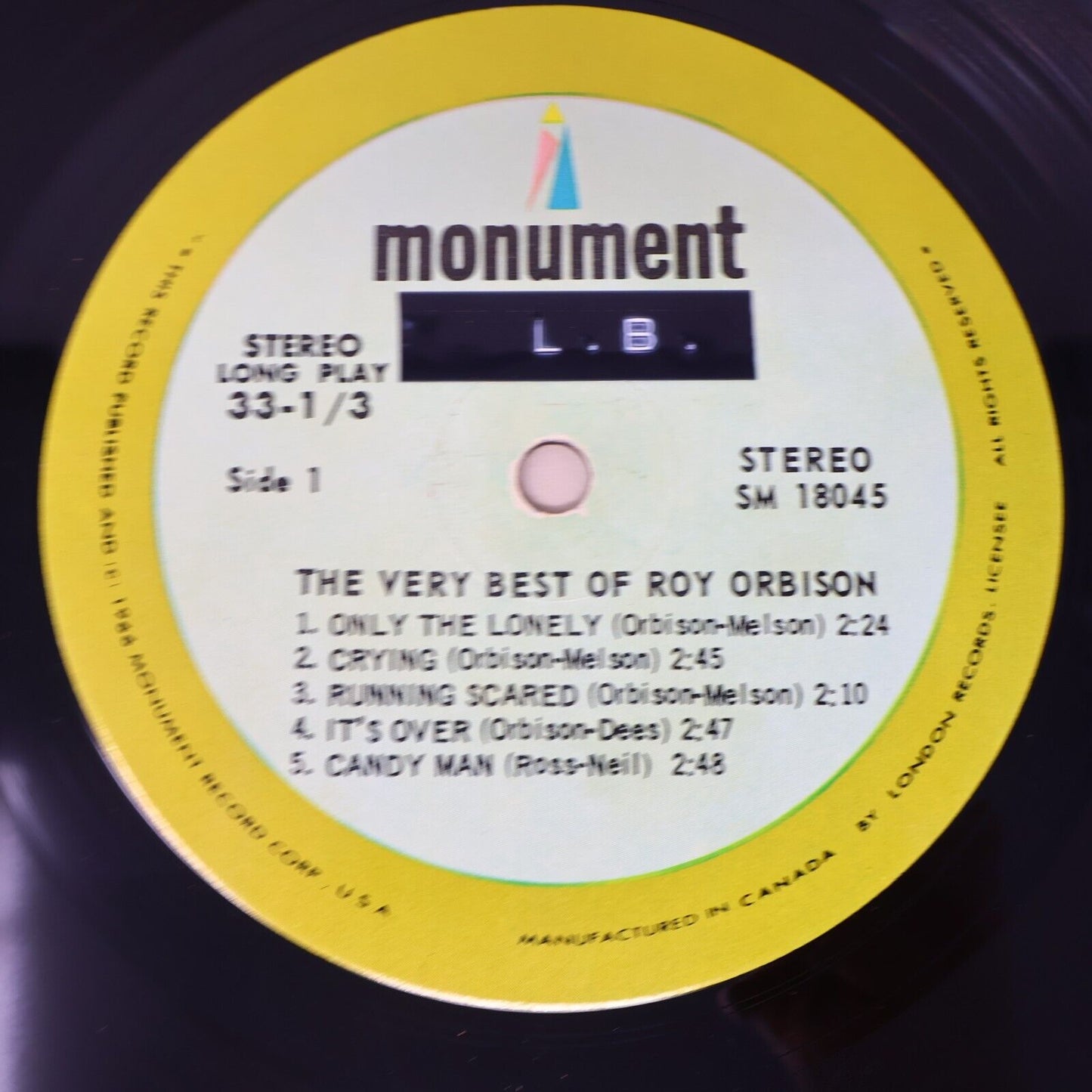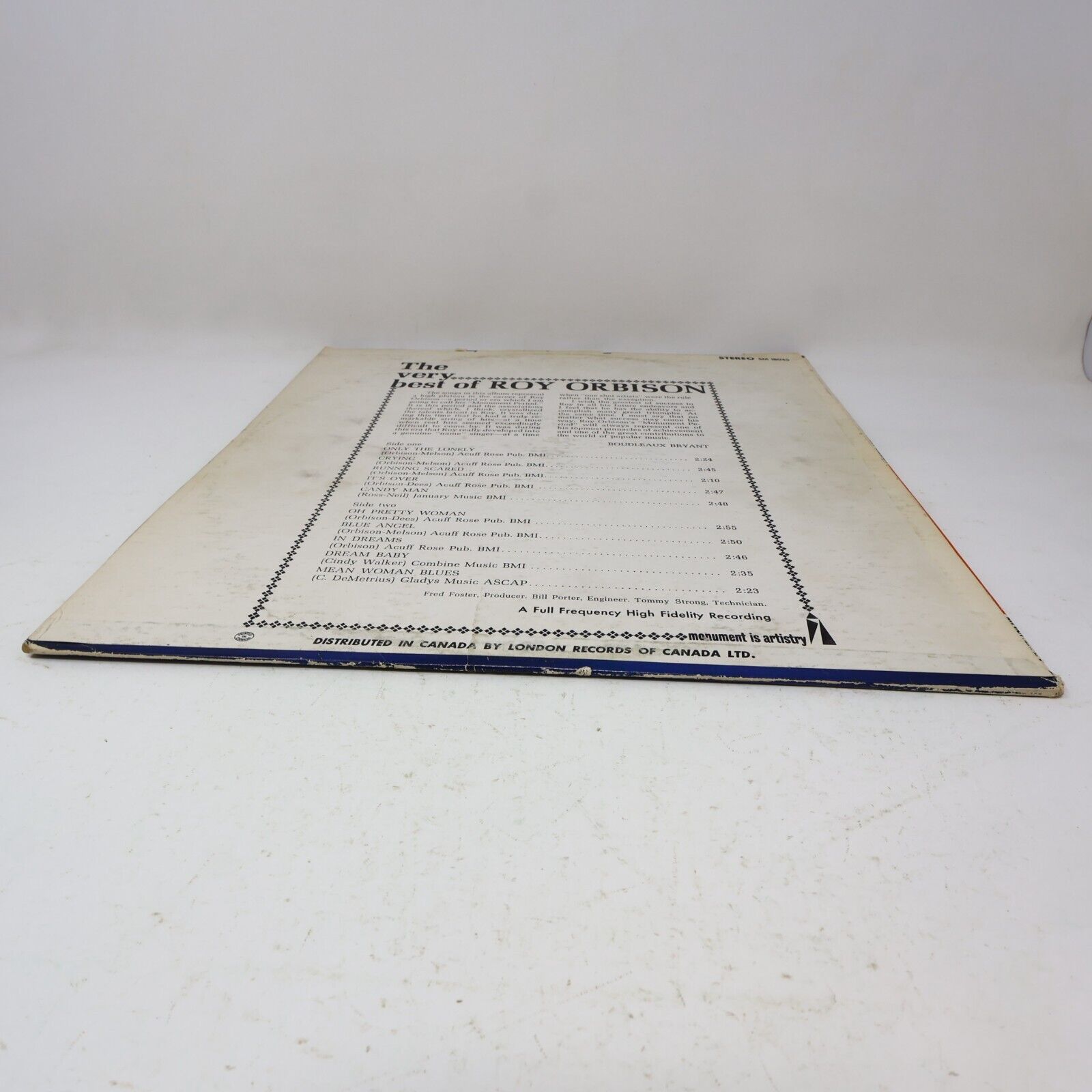 The Very Best Of Roy Orbison LP Record Vinyl Monument SM 18045 Canada 1960s