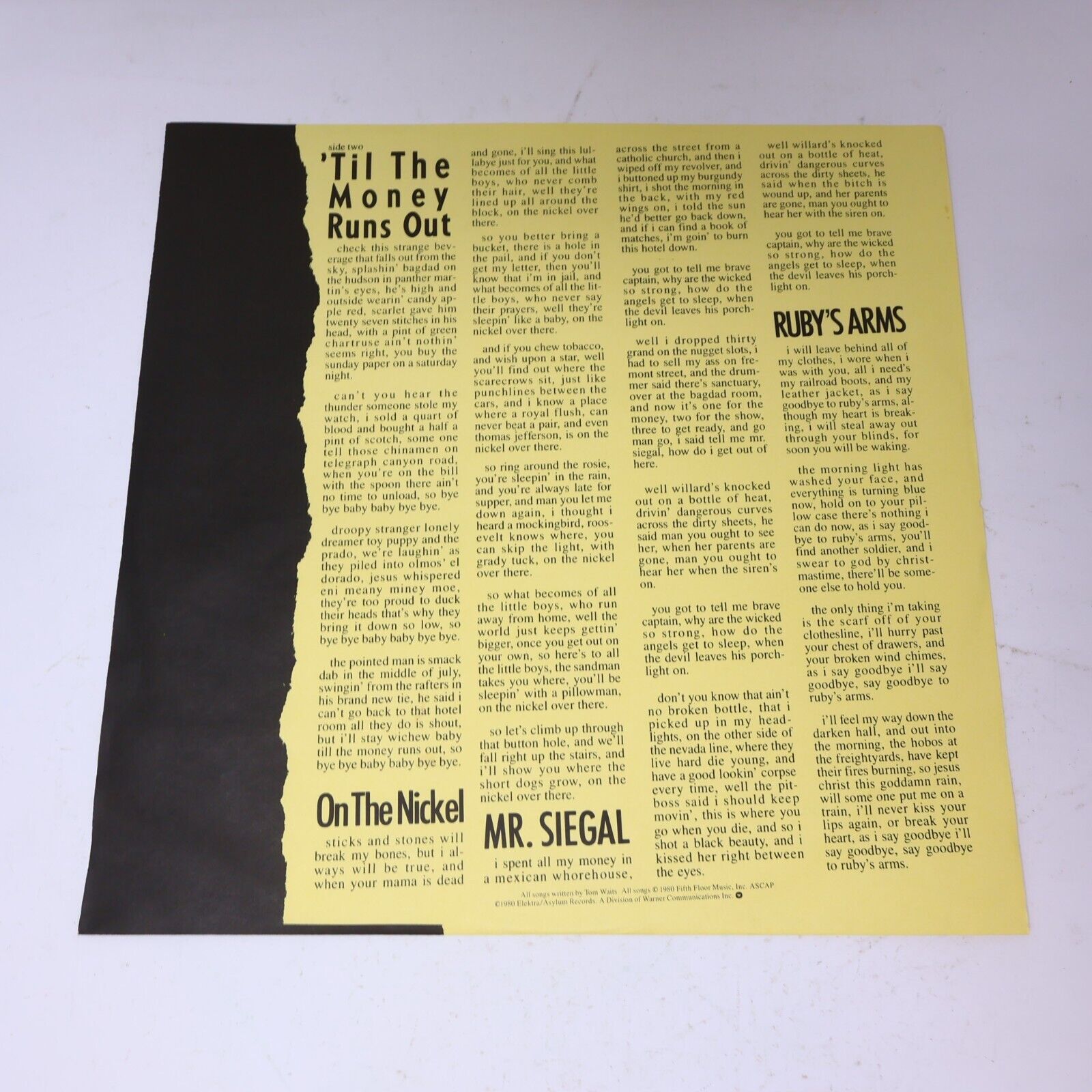 Tom Waits Heartattack And Vine LP Record Vinyl Asylum X6E-295 Canada 1980 Rock