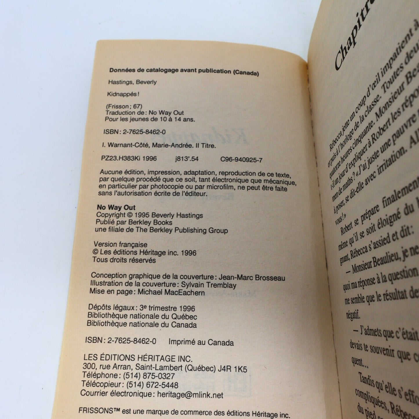 1996 Kidnappés! Frissons #67 de Beverly Hastings Paperback PB EH Ados Horreur