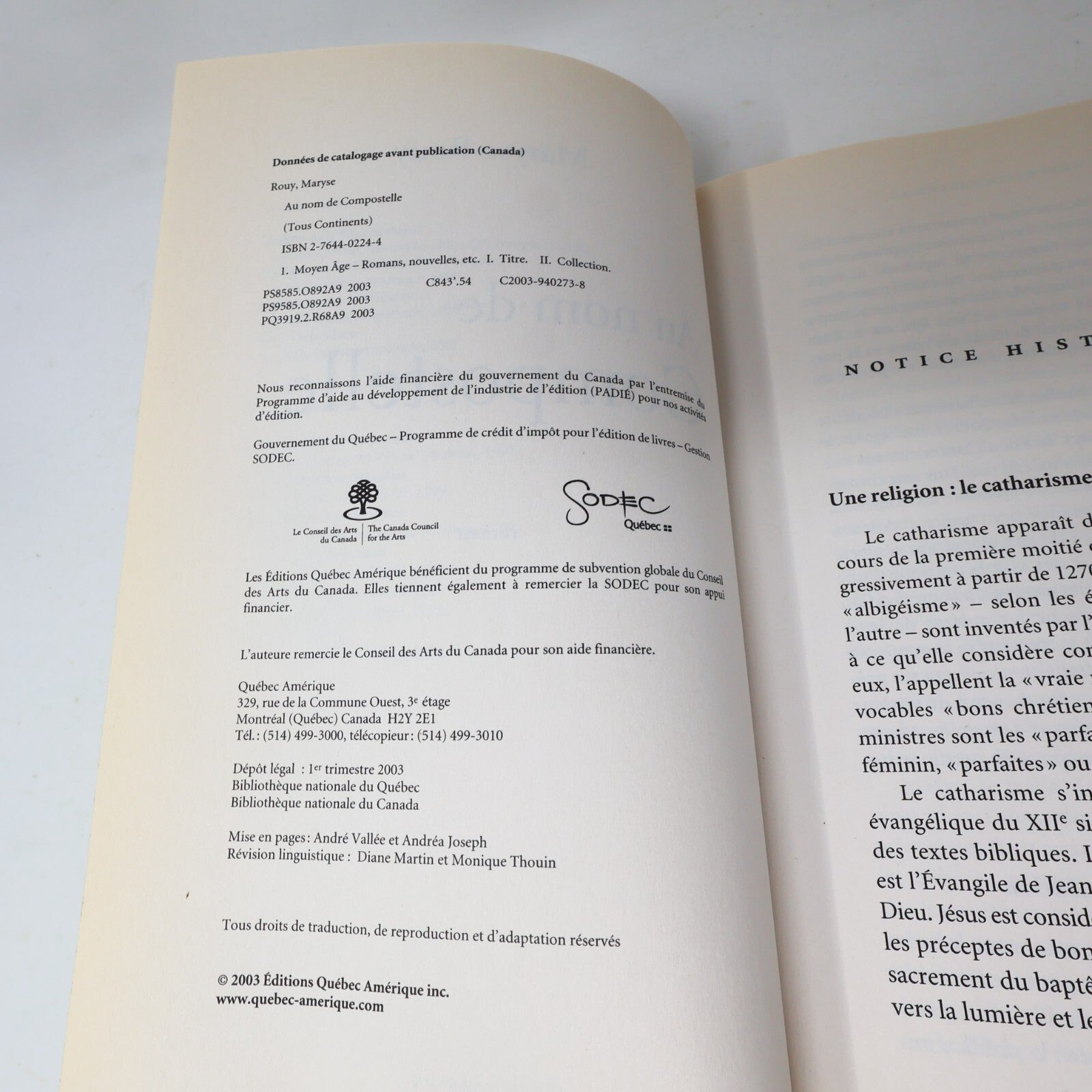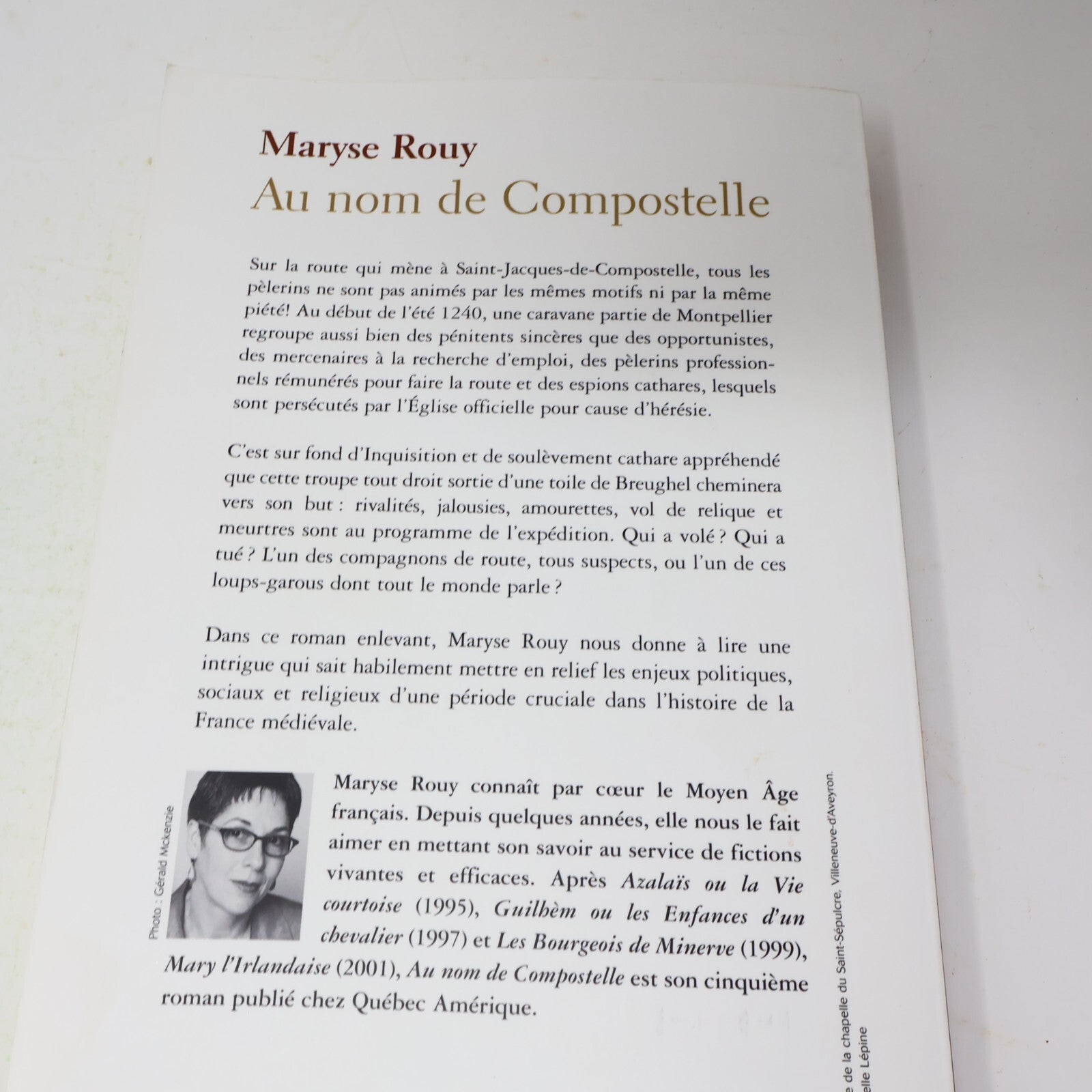 2003 Au Nom de Compostelle Maryse Rouy Québec Amérique Fiction Historique Livre