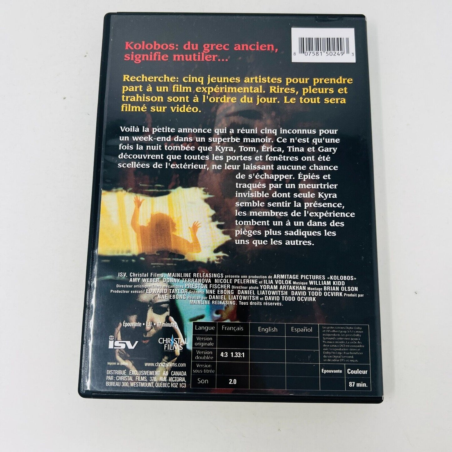 2003 Kolobos DVD Testé Horreur Français/French NTSC Region 1 Christal Films 4:3