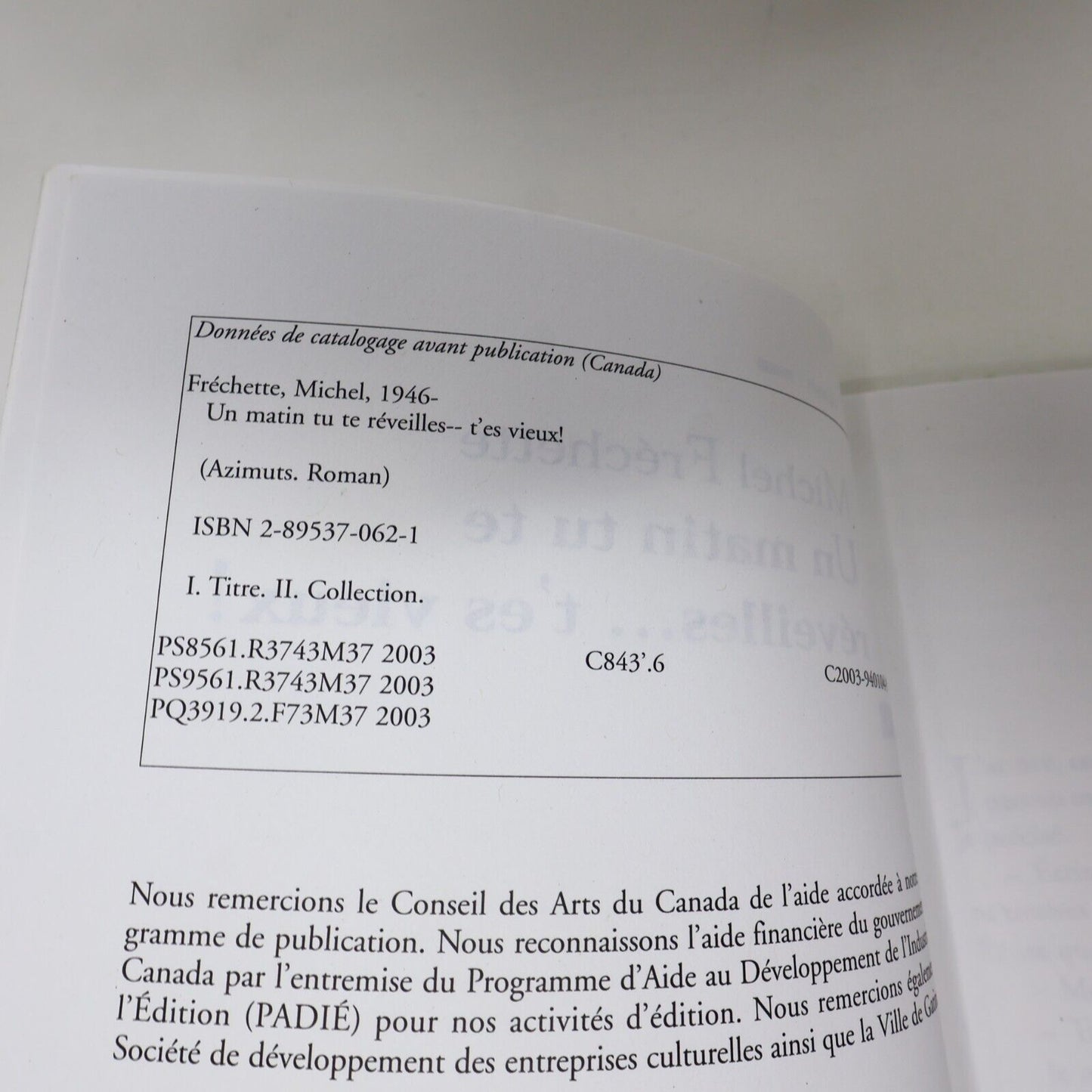 2003 Un Matin tu te Réveilles... t'es Vieux! Michel Fréchette Roman Québec Livre