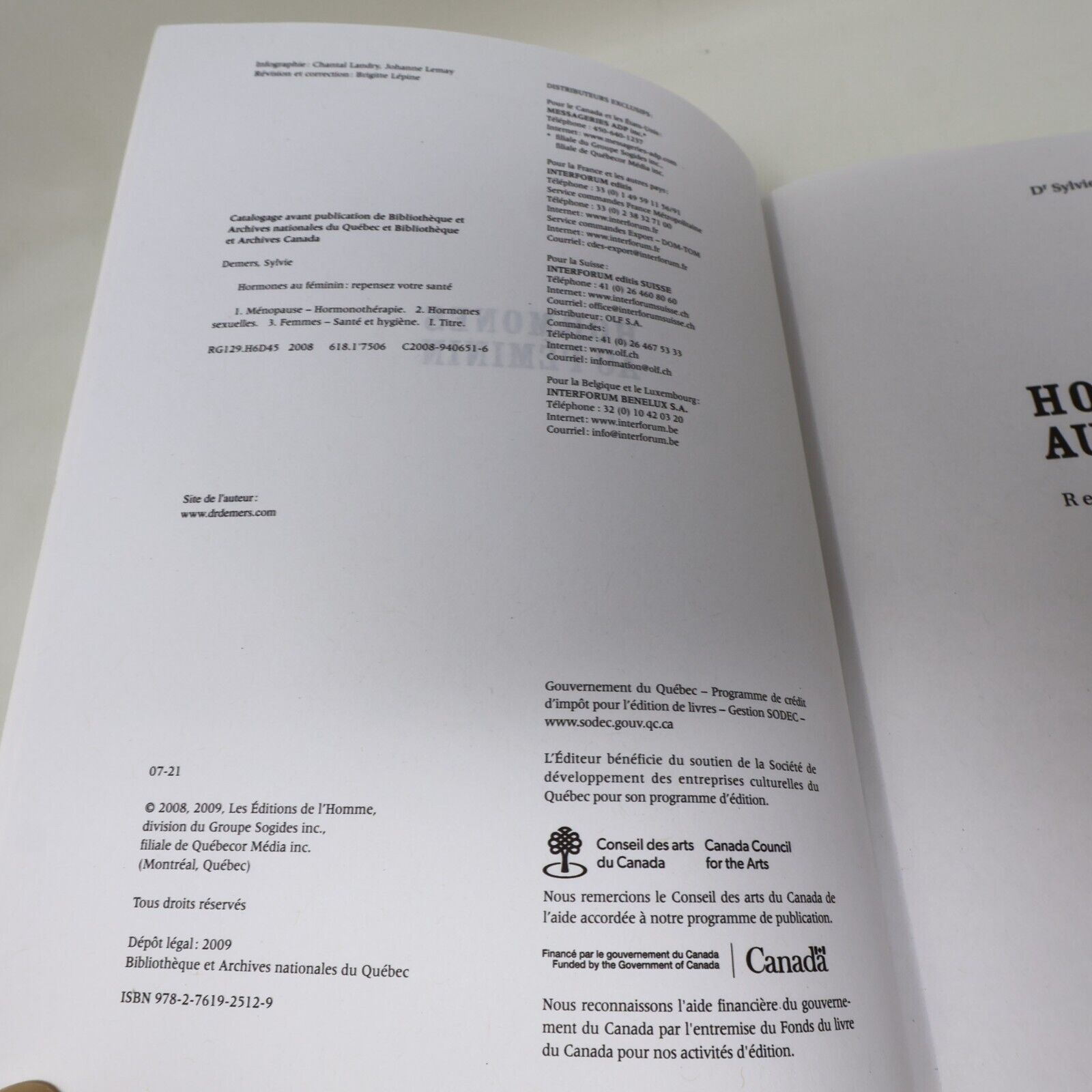 2008 Hormones au Féminin Repensez Votre Santé Dr. Sylvie Demers Femme Nutrition