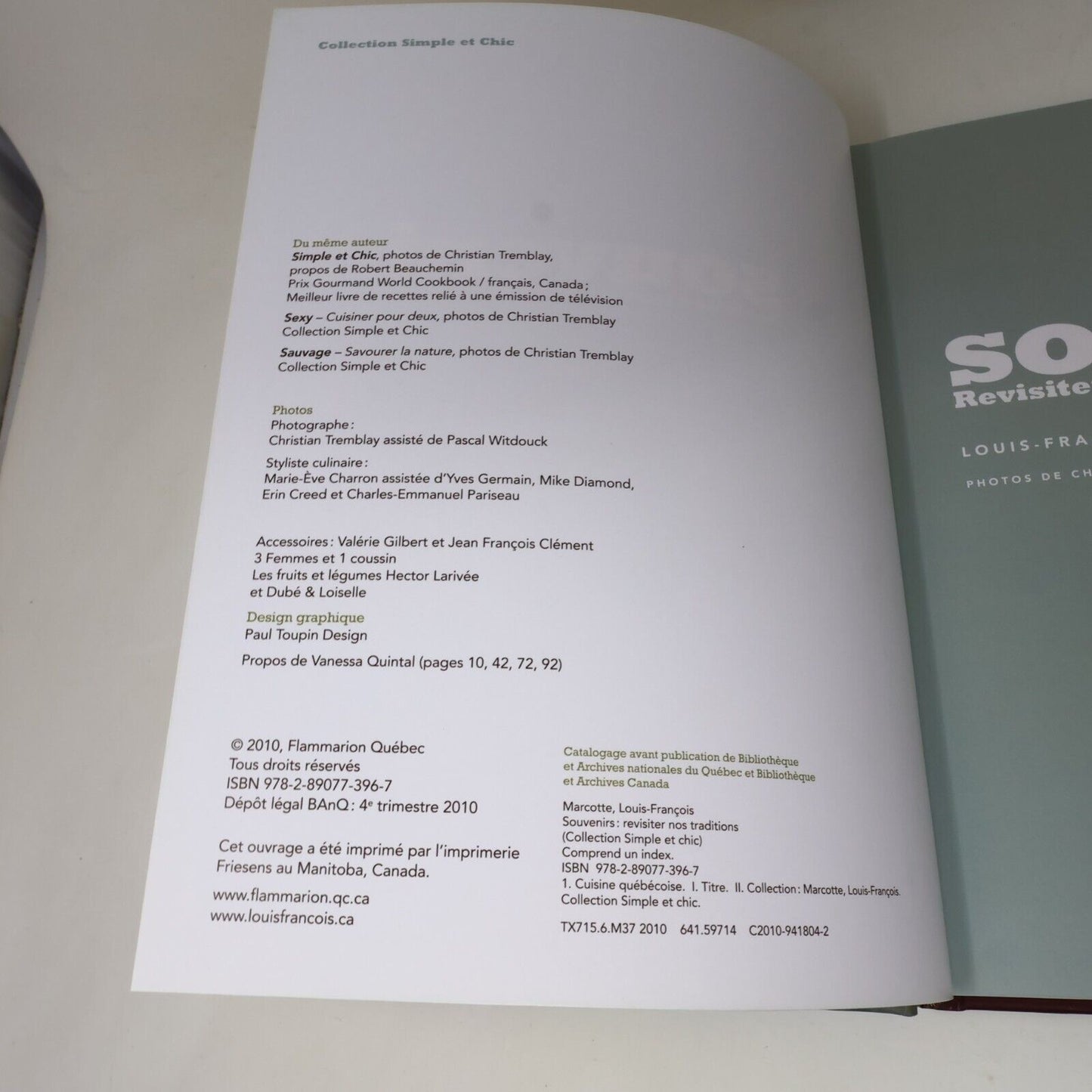 2010 Souvenirs Revisiter Nos Traditions de Louis-François Marcotte Cuisine Livre