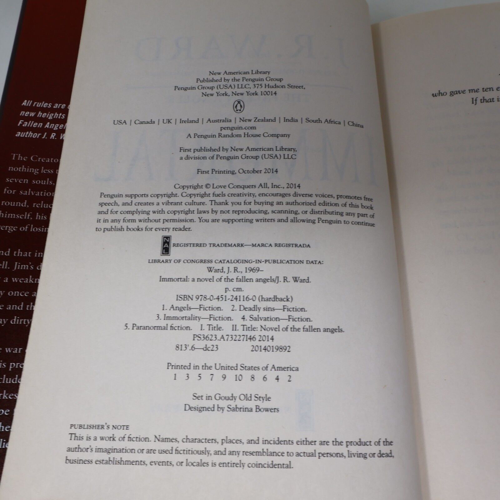 2014 Immortal J.R. Ward Fantasy Romance Vampires The Fallen Angels Nal Hardcover