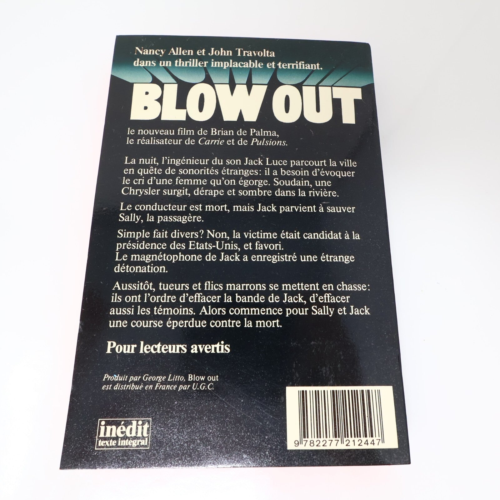 Blow Out Neal Williams/Brian de Palma J'ai Lu 1982 Thriller Film Français Livre