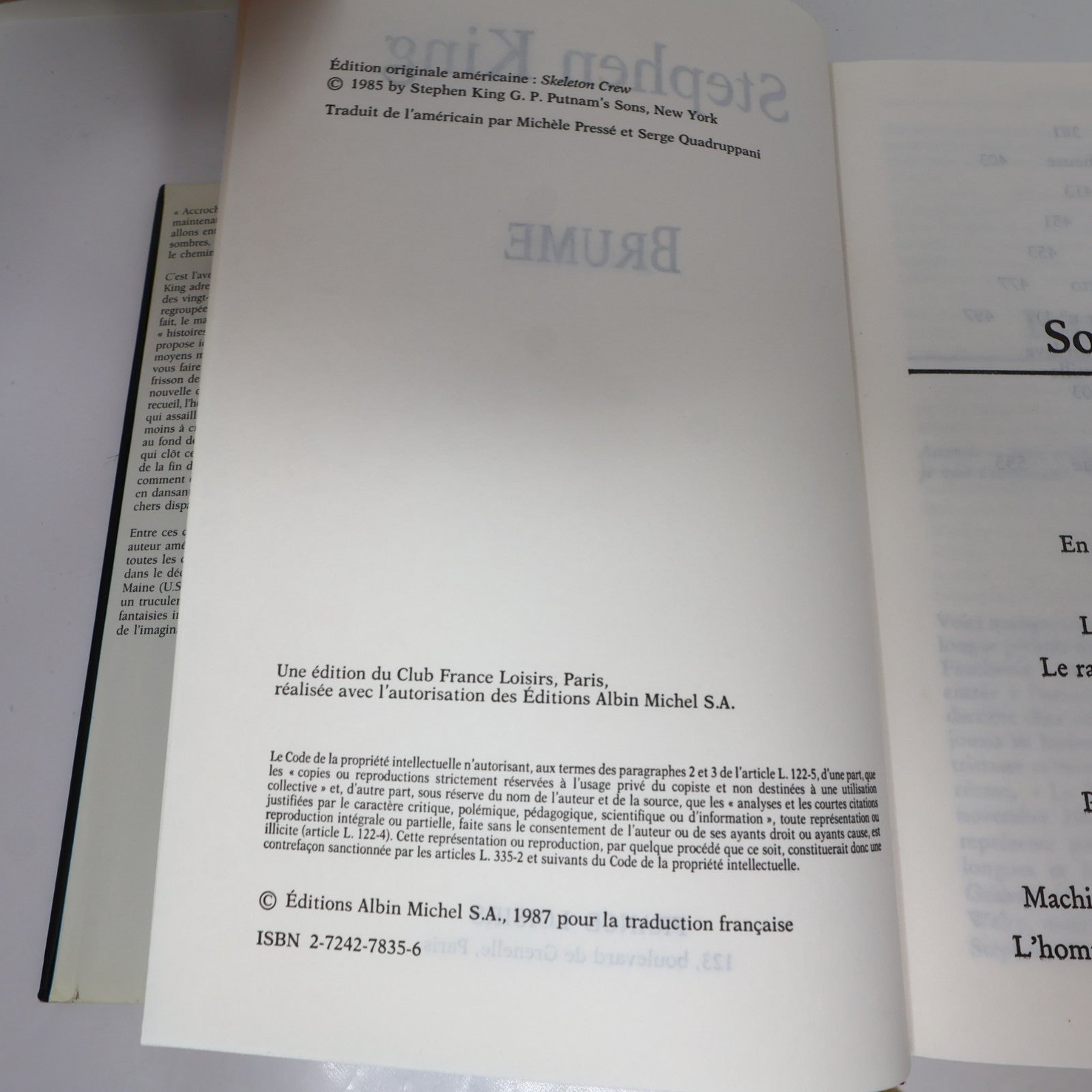 Brume Stephen King France Loisirs 1994 HC DJ Français/French Horreur Thriller
