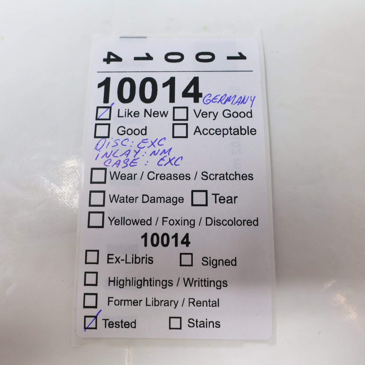 Inlay : Near mint