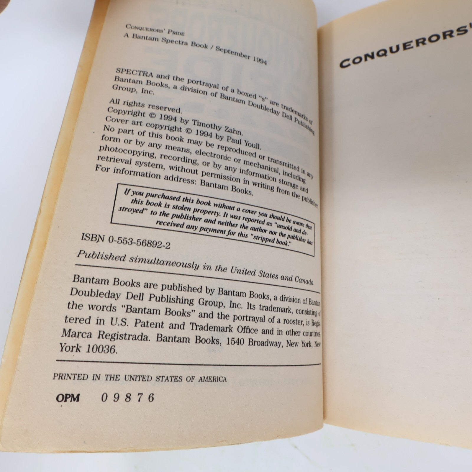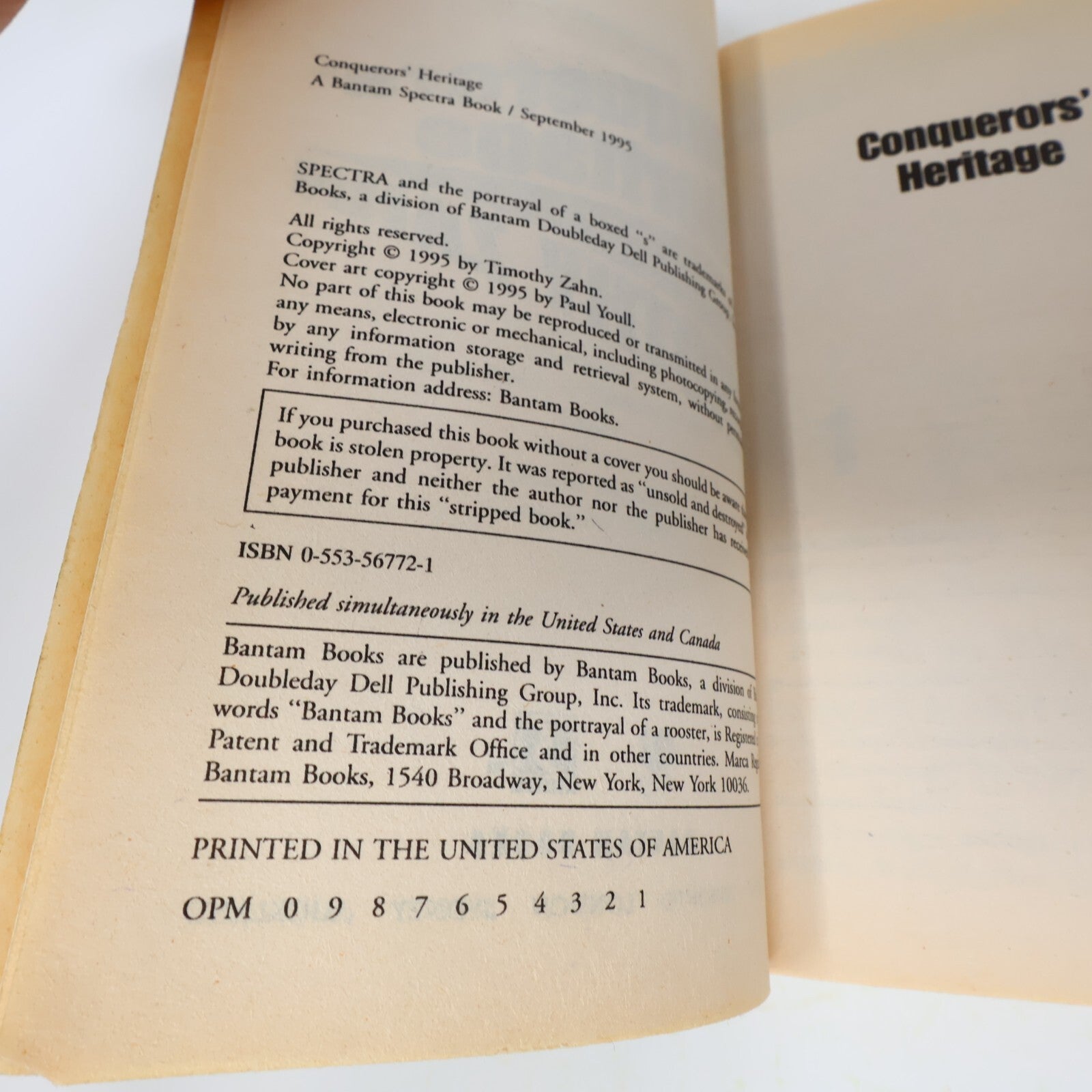 Conquerors' Heritage/Pride 2 Books Lot Timothy Zahn Spectra Science-Fiction 90s