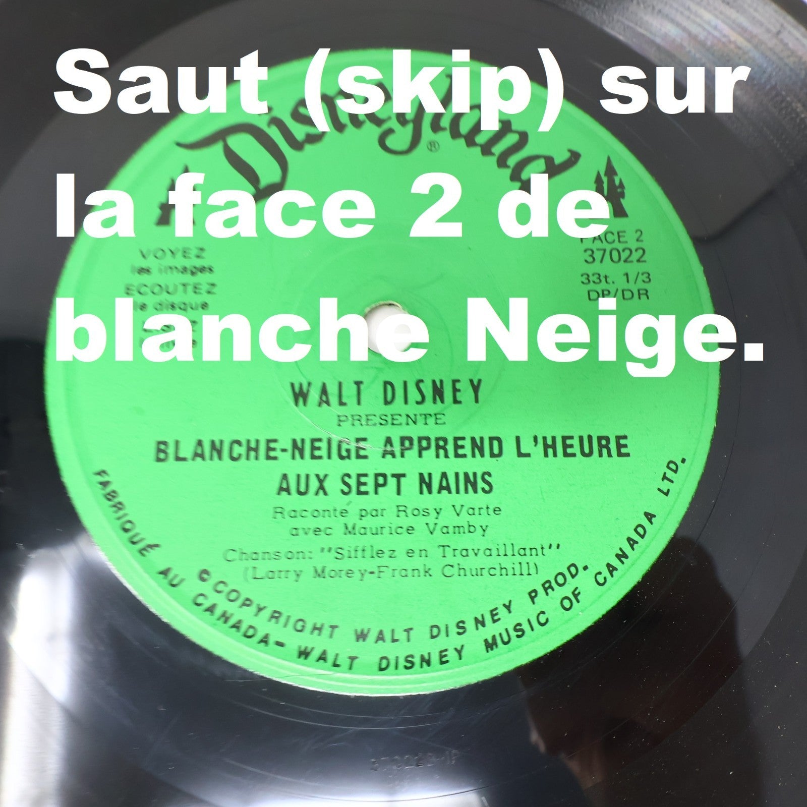 Blanche Neige Apprend L'heure Aux Sept Nains : Mauvaise. Bruit de fond, égratignures et un saut (skip) sur la face 2.