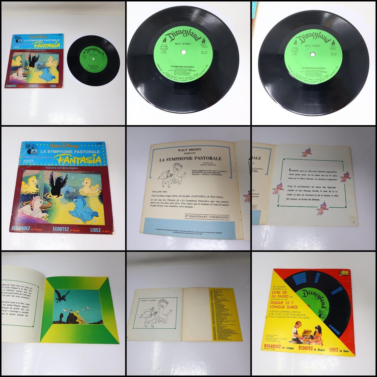 Disney Disneyland Lot 4 Livre Disque 7" Fantasia/Peter/Tuf-Tuf/Blanche Neige 70s