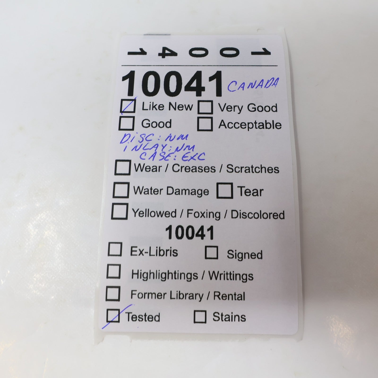 Inlay : Near mint