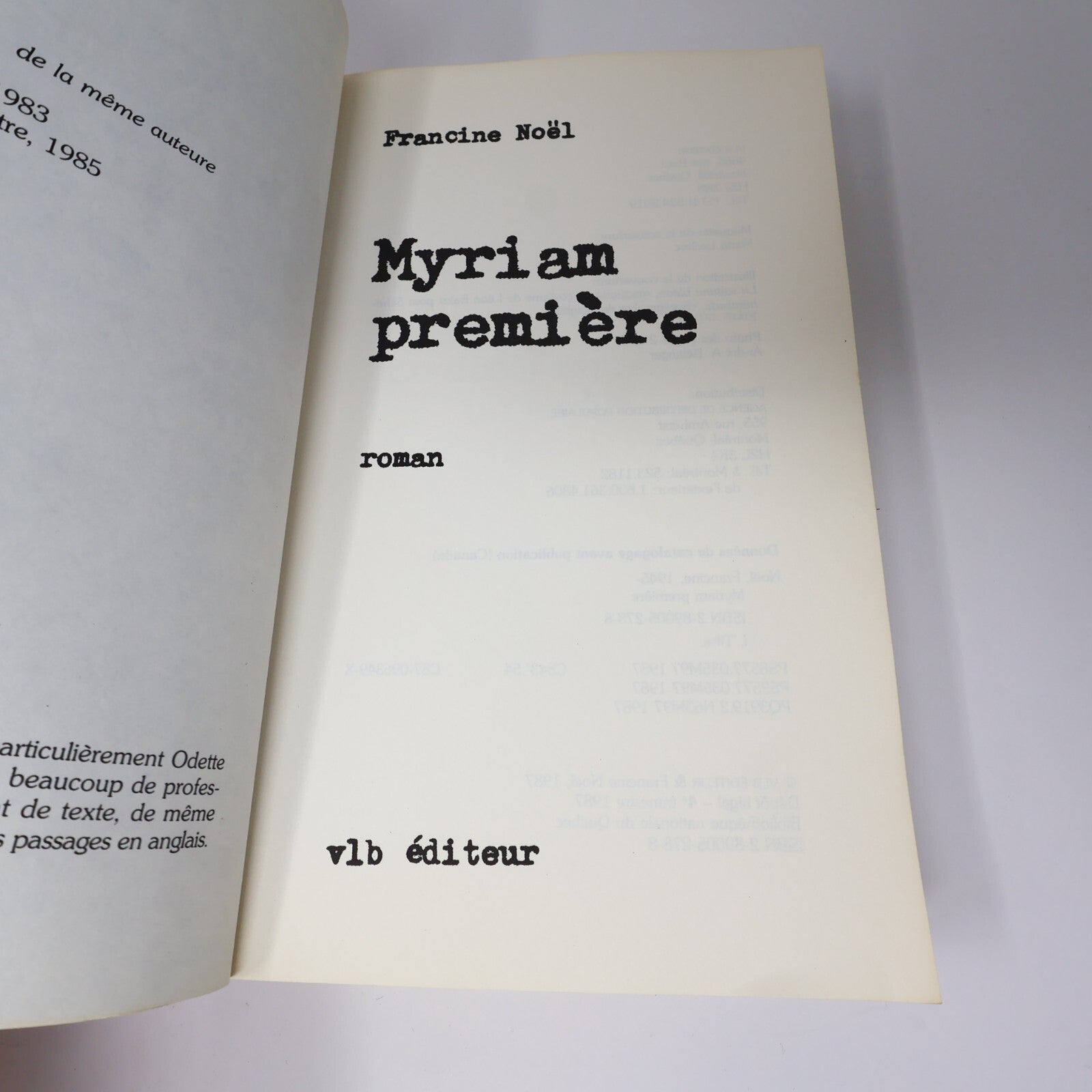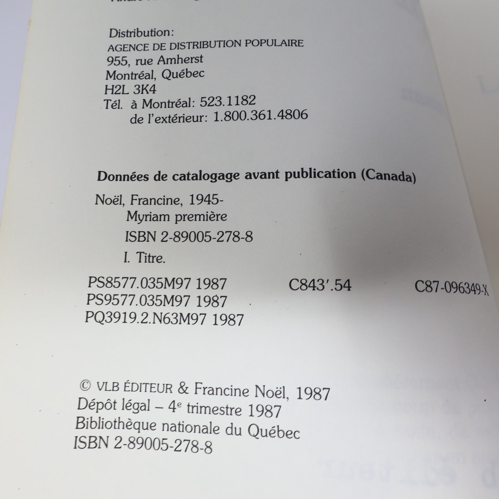 Francine Noël Lot 2 Livres Myriam Première/Maryse Littérature Québécoise Roman