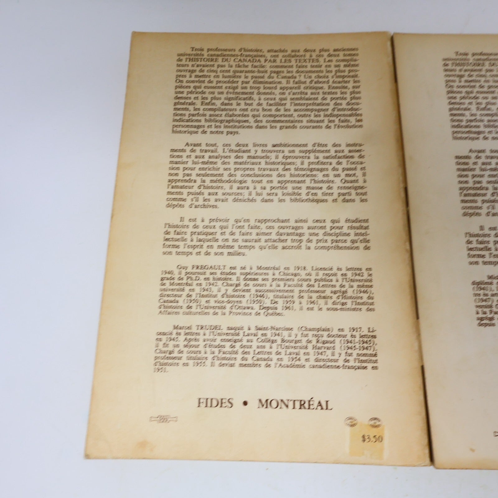 Histoire du Canada Par les Textes #1-2 Série Complète Lot 2 Livres Fides French