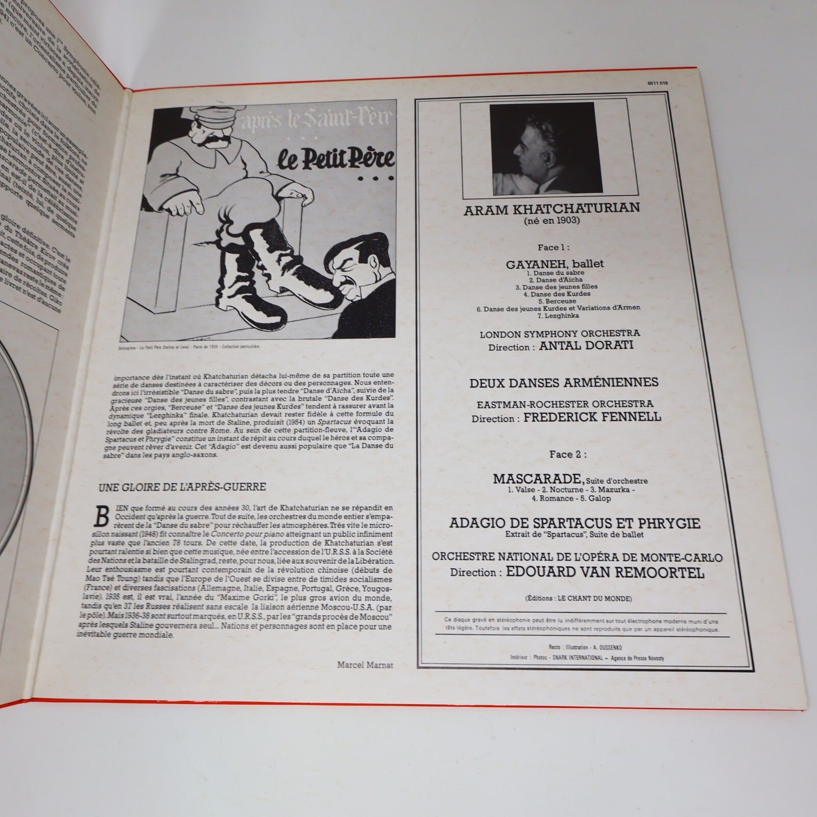 Khatchaturian Gayaneh (Sabre)/Danses Arménienne/Mascarade Disque Vinyl 6511 018