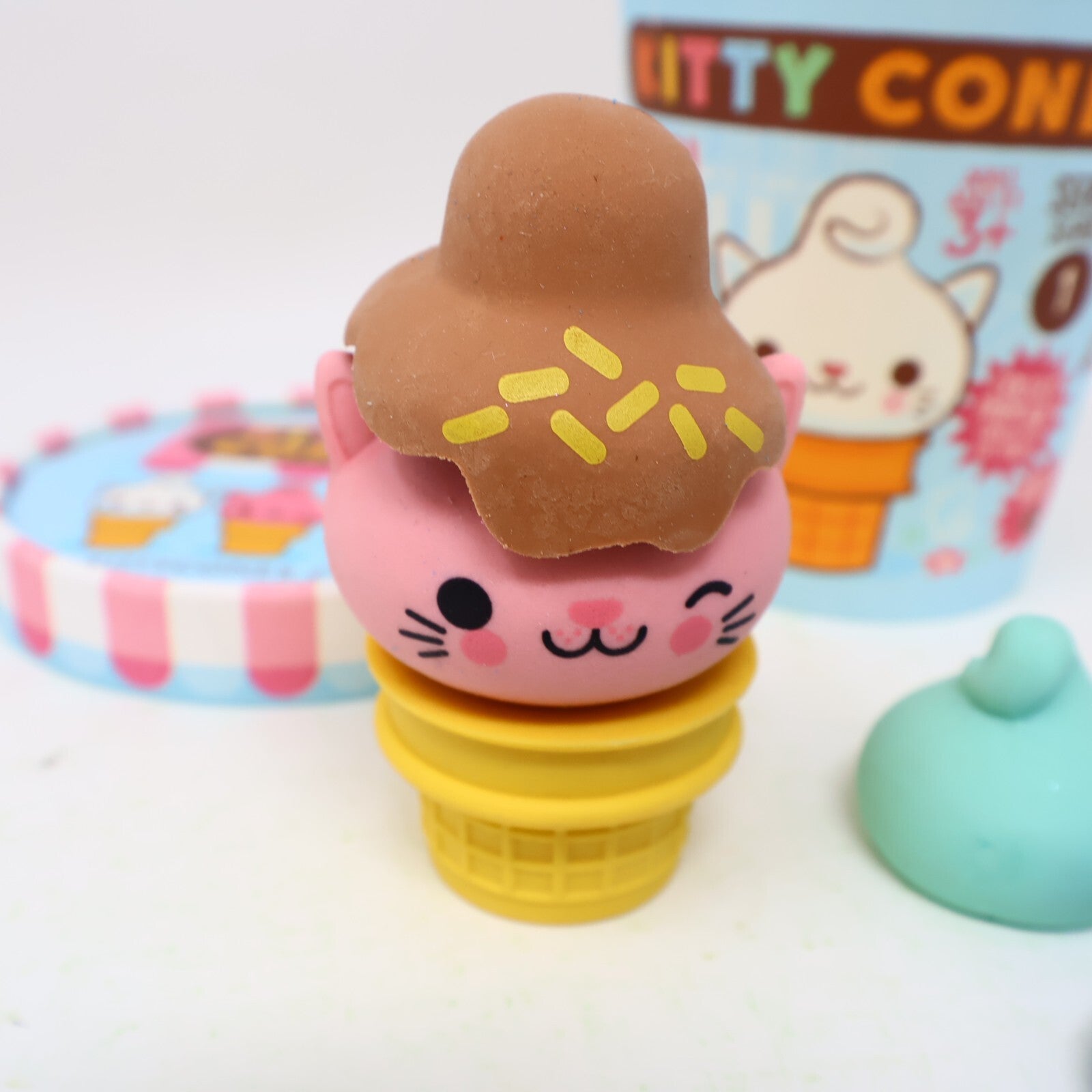 Kitty Cones Erasers Series 1 Miyu Pink Ice Cream with Box 4 Toppings 1 Cone