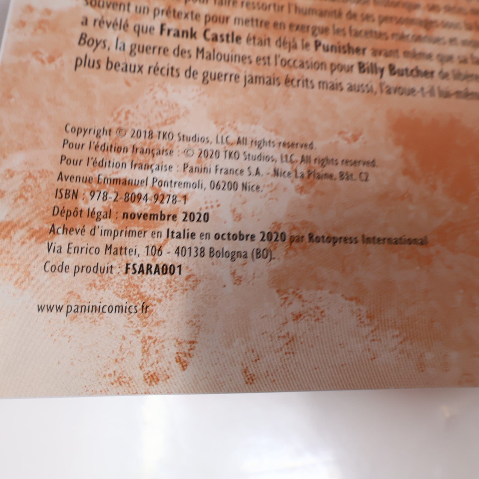 Sara Steve Epting/Garth Ennis Panini Comics 2020 HC Français French Bd Guerre