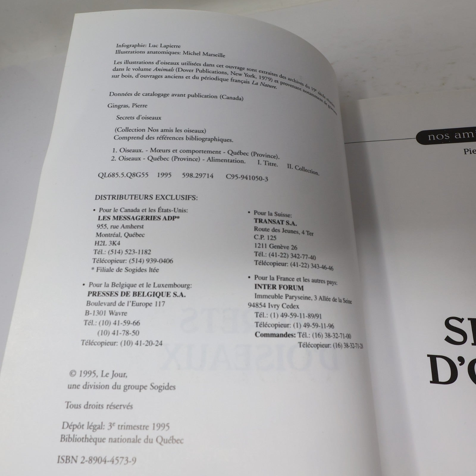 Secrets d'Oiseaux Pierre Gingras Nos Amis les Oiseaux Le Jour 1995 PB Français