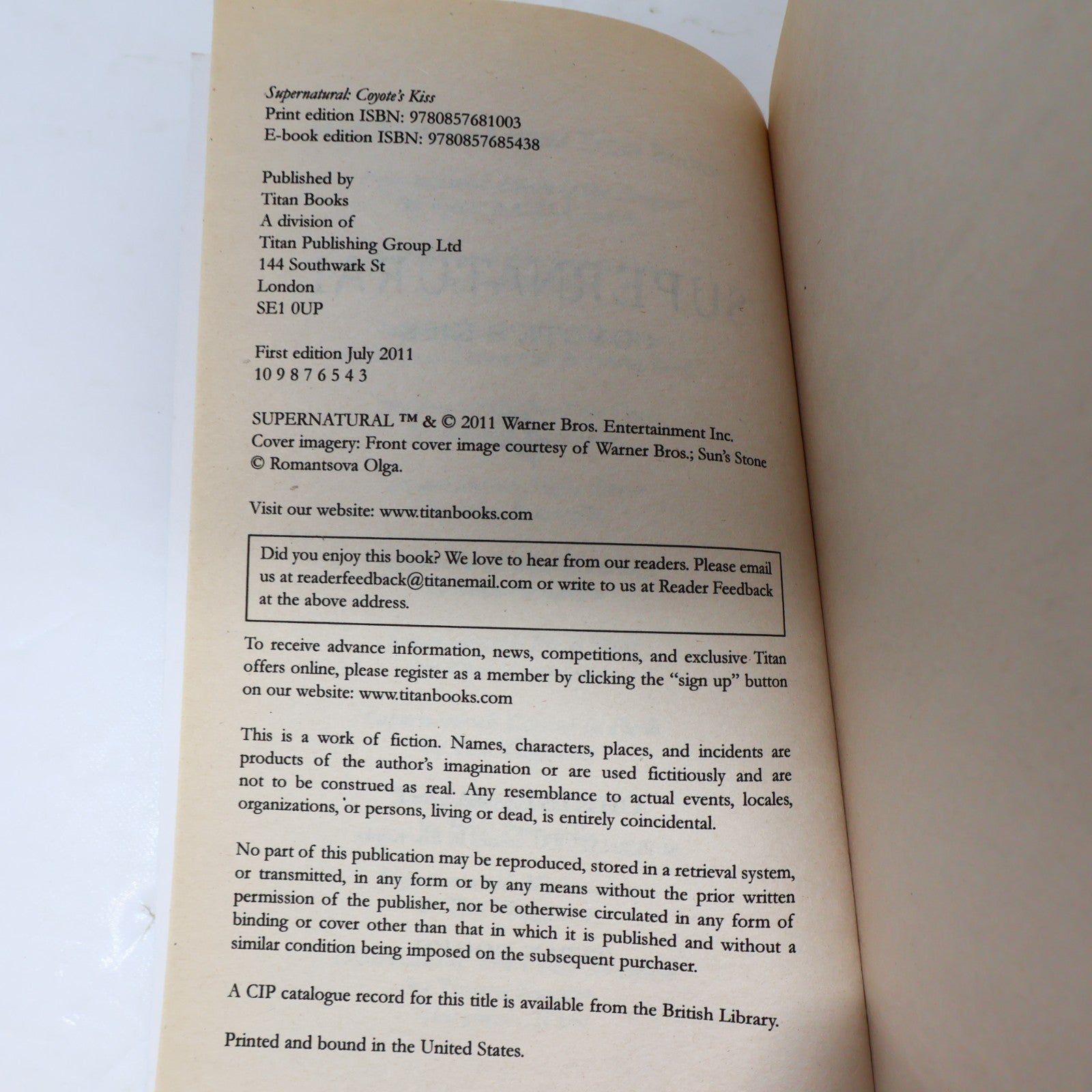 Supernatural Coyote's Kiss Christa Faust Titan Books 2011 PB Horror Fantasy