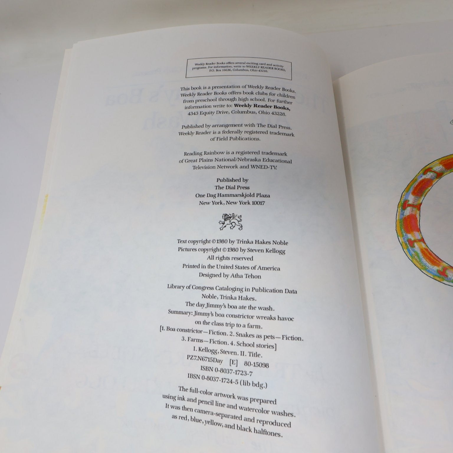 The Day Jimmy's Boa Ate the Wash Noble 1980 Illustrated Kids Book Dial Press
