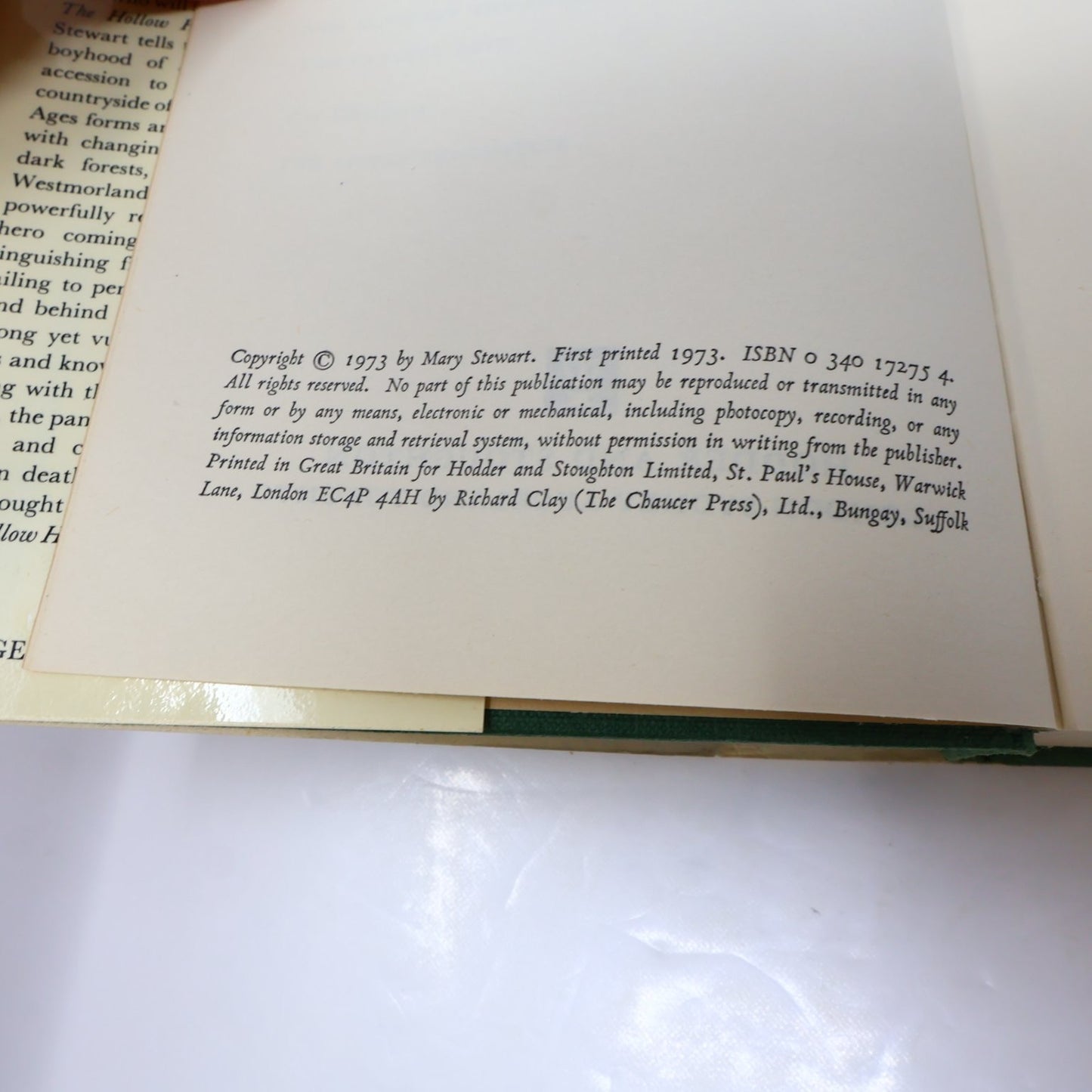 The Hollow Hills Mary Stewart 1973 UK Edition Arthurian Fiction Hodder Hardcover