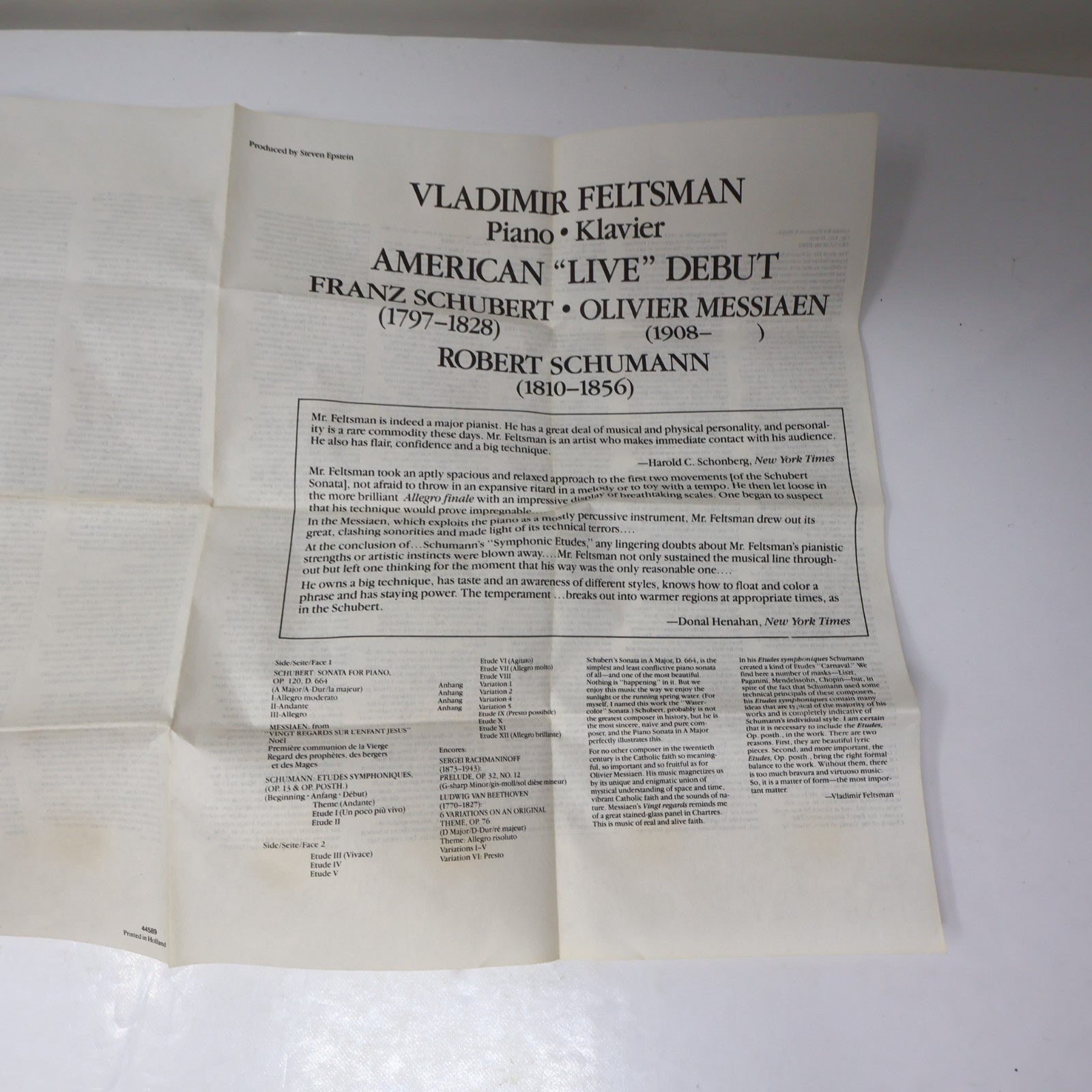Vladimir Feltsman American "Live" Debut Cassette Piano/Klavier CBS 1988 40-44589